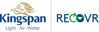 DM0000: The mark consists of the stylized wording KINGSPAN in blue beneath a stylized lion in gold. Under the wording KINGSPAN is the stylized wording LIGHT AIR WATER in blue and gold circles in between the wording. Separated by a blue line to the right is the stylized wording RECOVR in blue with the C stylized as a green arrow pointing to the O stylized as an image of the earth with a transparent heart in the center.