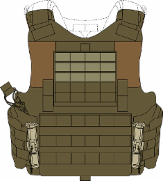- DM0000: The mark consists of the front view of a ballistic vest with a ranger green body and coyote brown lapels that are used in commerce by male federal law enforcement officer.