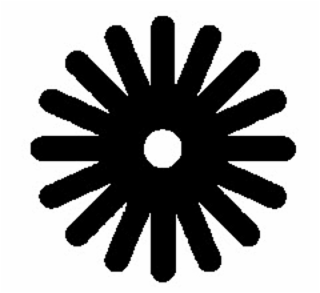 - DM0000: The mark consists of a stylized pinwheel design, featuring a circular arrangement of thick spokes, radiating outward from a small, central circle.
