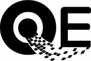 - DM0000: The mark consists of the letters QE in a stylized format. The "Q" consists of a center circular shape with a geometric pattern emitting from the bottom and to the right. The center circular shape is surrounded by two outer rings.