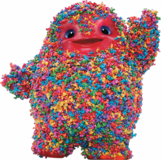 - DM0000: The mark consists of a red stylized candy character with large eyes and a wide mouth. The character is almost entirely covered by smaller stylized candy characters with large eyes, creating a multicolored layer. Each of the stylized small candy characters are displayed in one of the following colors blue, pink, orange, yellow, red, purple, or green.