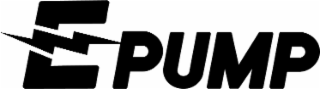 - DM0000: The mark consists of The stylized letter “E” followed by the word “PUMP” in capital letters. A lightning bolt design is integrated into the center horizontal bar of the letter “E” and extends to the right, occupying the space between “E” and “PUMP”.