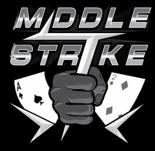 - DM0000: The mark consists of the wording MIDDLE STRIKE, with the stylized "T" being held by a fist. A playing card and angled design appear on each side of the fist.