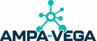 - DM0000: The mark consists of an open circle from which extend six lines ending in filled circles, all in blue. Below that appears the wording AMPA-VEGA, with AMPA and VEGA appearing in dark navy blue and the hyphen appearing in blue.