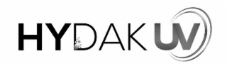- DM0000: The mark consists of the stylized wording "HYDAK" with stylized wording "UV" appearing to the right of the wording "HYDAK". The wording "UV" appears within two incomplete concentric circles.