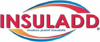 DM0000: The mark consists of The INSULADD logo features the brand name in bold, uppercase red letters with a black outline, making it stand out prominently. Surrounding the text are two dynamic, curved swooshes — one in red and blue at the top, and the other in orange and blue at the bottom.