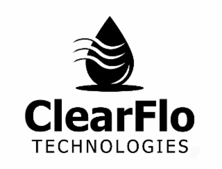 - DM0000: The mark consists of The mark consists of a stylized water droplet containing three curved lines that extend from the left side of the droplet, suggesting motion or fluid flow. The droplet sits above a solid oval base, indicating reflection or shadow. Below the droplet design is the stylized wording “ClearFlo” in bold font, with the word “TECHNOLOGIES” in uppercase letters and smaller font size centered beneath “ClearFlo”.