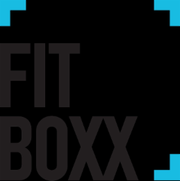- DM0000: The mark consists of Three blue corner marks, " Fit Boxx" on the bottom left of the logo in "Knock out Font" and colored in White or Black, background is blank.