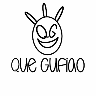 - DM0000: The mark consists of the literal stylized element “Que Gufiao” appears below a vejigante mask with three horns, a smiling mouth, a left eye formed by the letter “Q” and a right eye formed by the letter “G”.